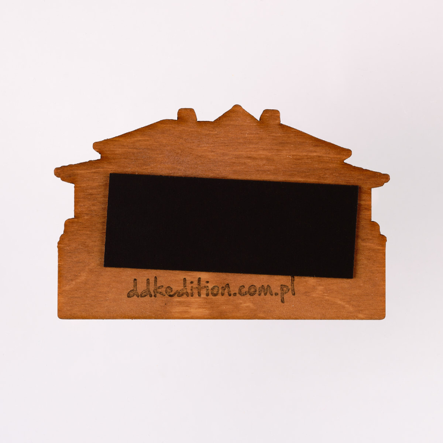 Magnes wydrukowany bezpośrednio na wyciętej laserowo sklejce o grubości 3mm. Motyw prezentuje dworek „Milusin”, czyli dom rodzinny Józefa Piłsudskiego w Sulejówku.